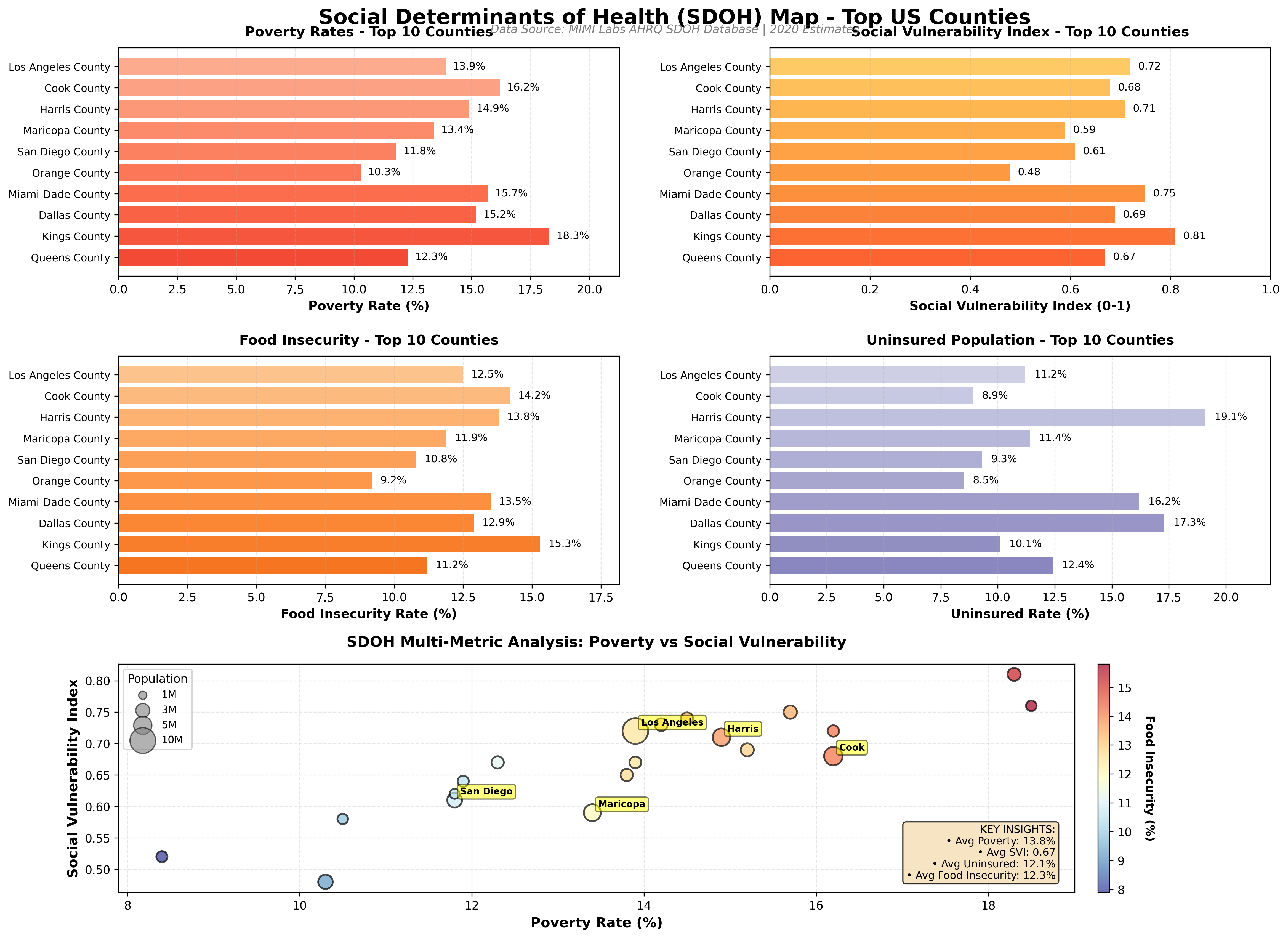 - Multi-Metric Scatter Analysis - revealing correlations between poverty, social vulnerability, and food insecurity